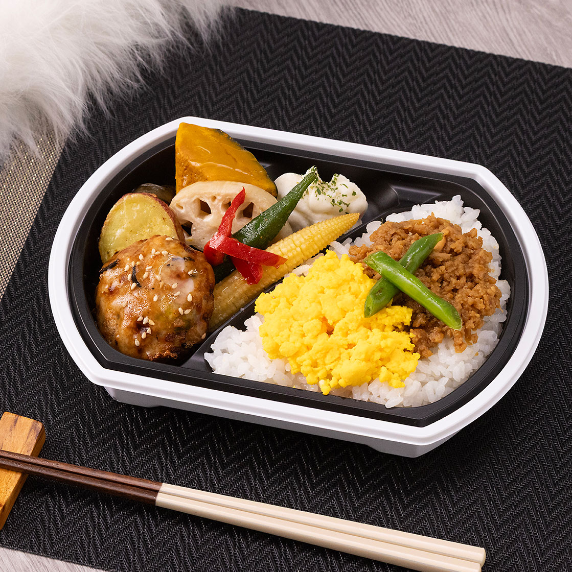 生姜香る鶏そぼろごはん&豆腐バーグの彩り野菜弁当