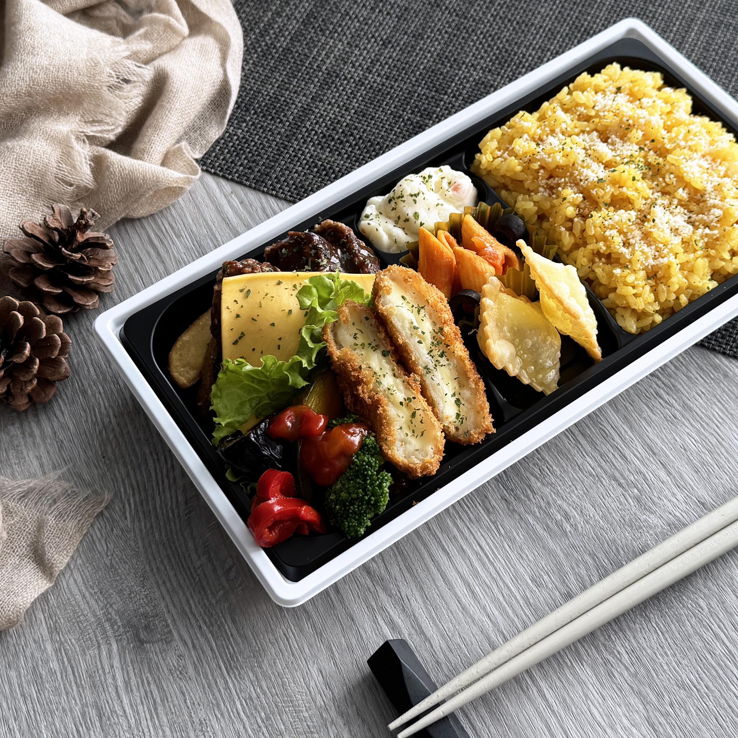 ~サフランライス~Demi-cheese Hamburg steak & cheese fondue croquette with saffron rice gozen