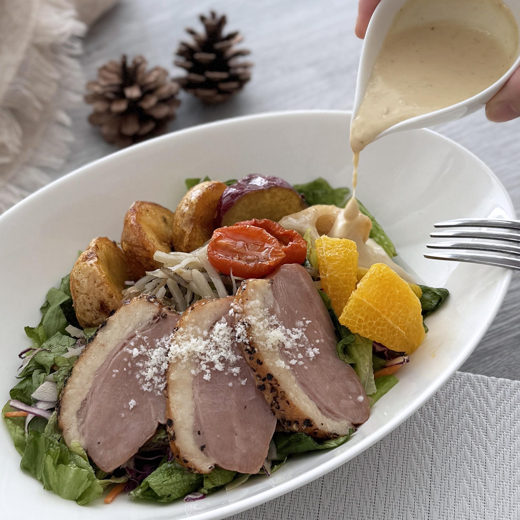 ~生姜クリーミードレッシング~Duck, orange & winter vegetable salad