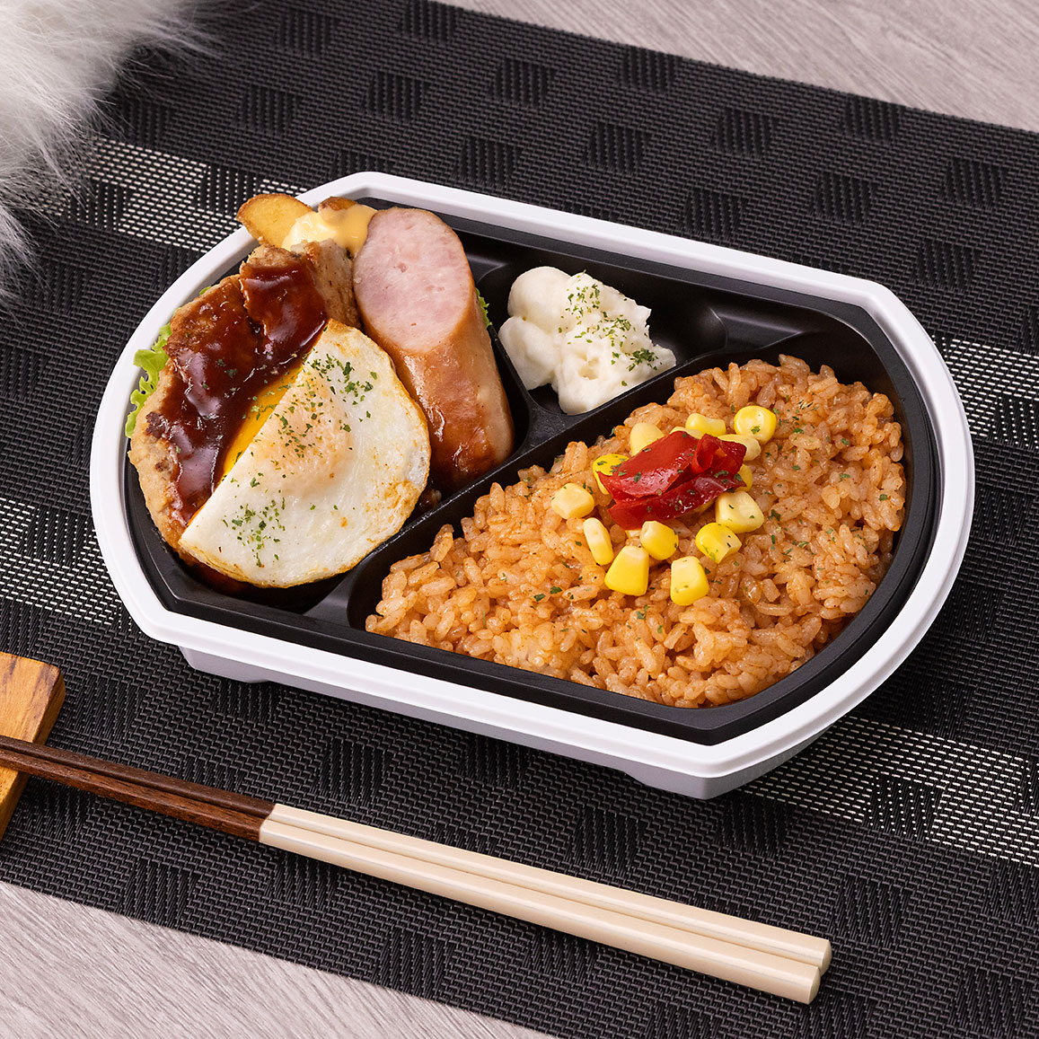 バーベキューソース仕立てのハンバーグ&ジャンバラヤ弁当
