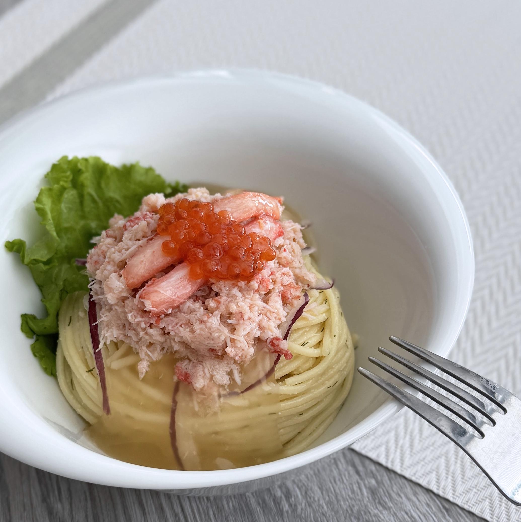 ~柚子あんかけ仕立て~Chilled red snow crab pasta - With yuzu starchy sauce -