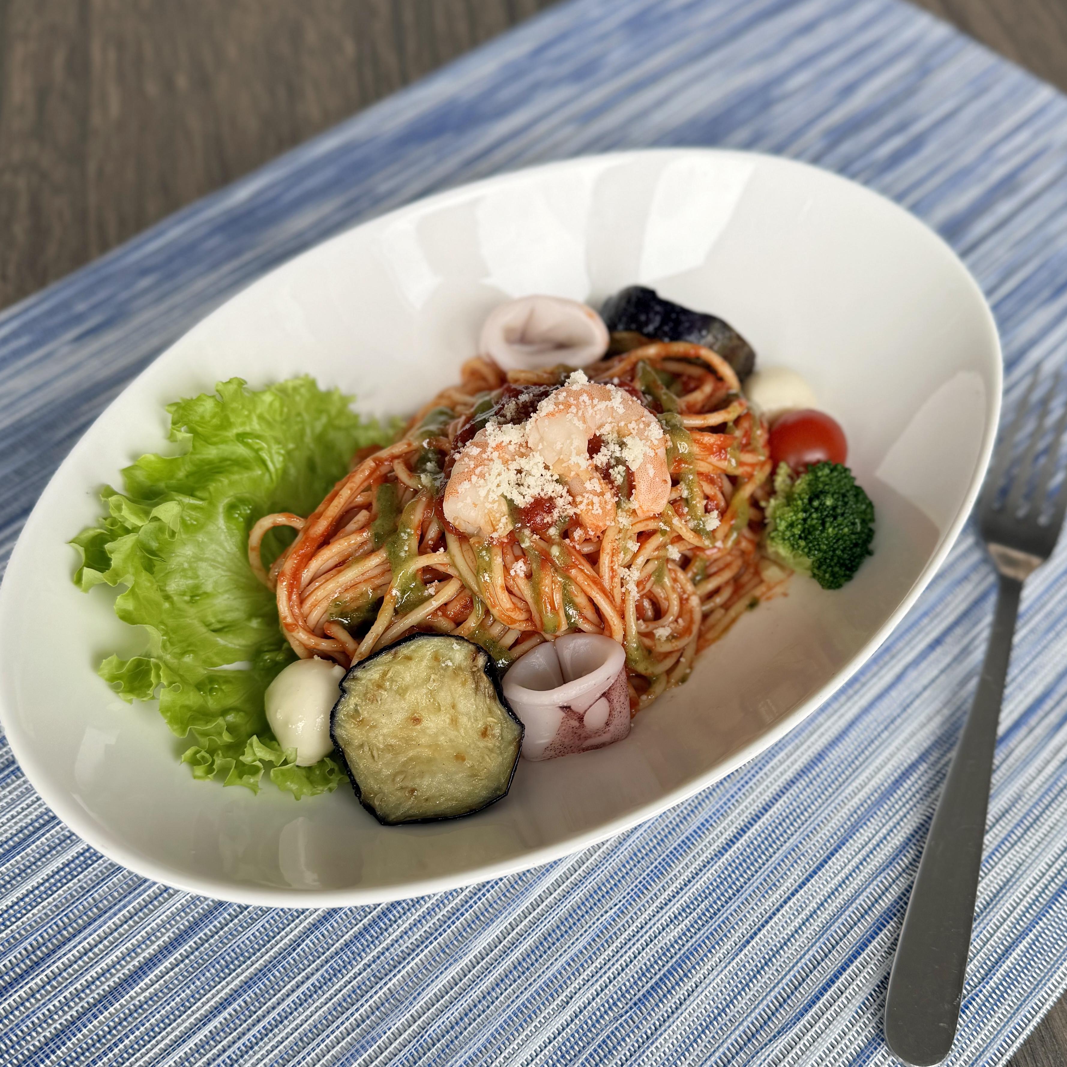 海老とイカの冷製ペスカトーレChilled pescatore with shrimp and squid with sauce